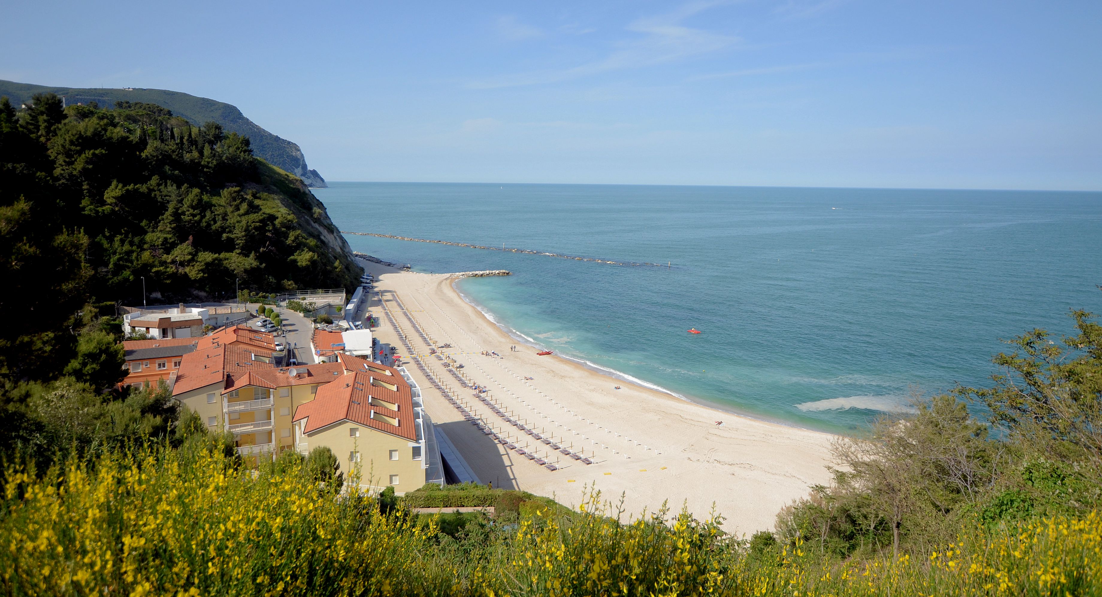 Byen Sirolo kaldes i Marche for Adriaterhavets Perle. Denne lille smukke badeby ligger 100 meter over havets overflade, og fra pladsen midt i byen har man en vidunderlig udsigt over Adriaterhavet. På klare dage kan man skimte Kroatiens kyst. Sirolo er igennem de seneste år blevet et stadig mere populært feriested, ikke mindst blandt italienere. Og ikke uden grund. Den lille hyggelige by er meget stemningsfuld og charmerende, med sine smalle, brostensbelagte gader, blomsterkasser, fortovscaféer og restauranter. Der findes nogle meget skønne strande ved Sirolo. Eftersom byen ligger højt, går eller kører man igennem pinjeskoven ned til stranden. Den mest besøgte er Spiaggia Urbani. Her findes der et godt udvalg af hyggelige restauranter og caféer med rimelige priser. Her findes både privat strand (hvor liggestol og/eller parasol er obligatorisk), samt et mindre stykke offentlig strand med bruser. Der er tale om en lille bugt, hvor vandet oftest er meget roligt. Derfor er Spiaggia Urbani velegnet til børnefamilier.